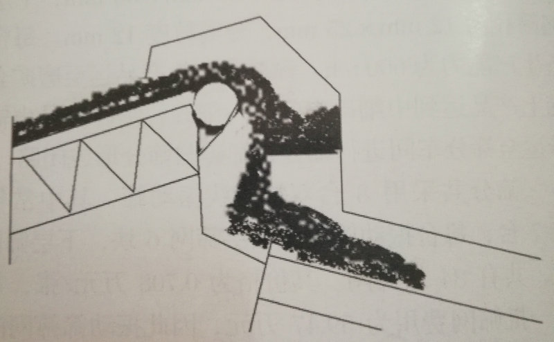 在振動篩給料輸送帶頭輪添加漏斗并增加隔板,使物料轉向落在第N塊篩網的前方,避免物料直接沖刷篩網,造成篩網局部破損;如圖所示: