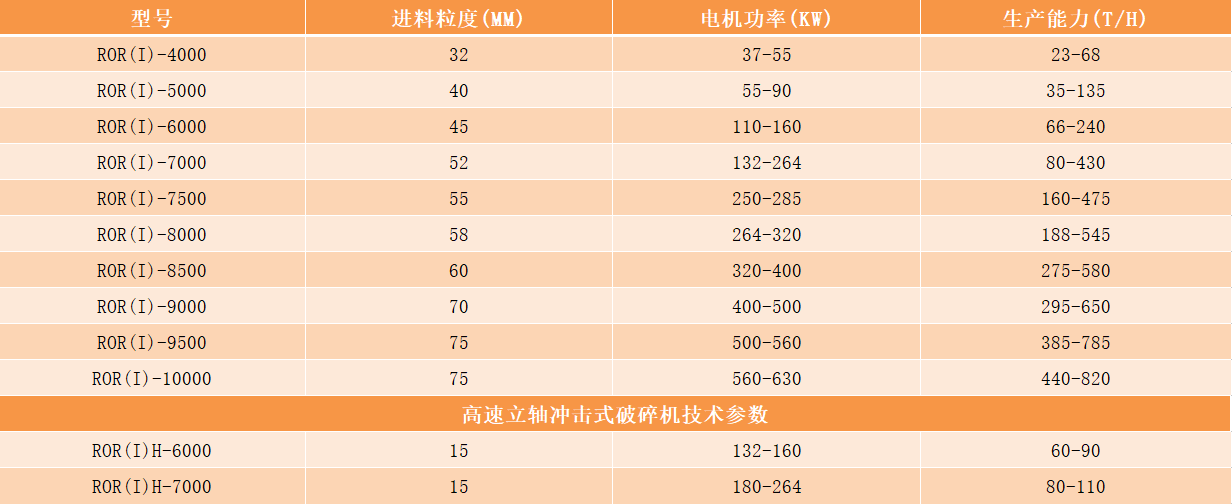立軸沖擊式破碎機型號及技術(shù)參數(shù):