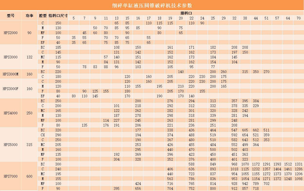 HPS系列單缸圓錐破碎機(jī)具有10余種破碎腔型變化及多種可供選擇的偏心距,使設(shè)備的靈活性和適應(yīng)性大大增強(qiáng)。同時(shí)同一臺(tái)圓錐式破碎機(jī)如果能夠正確的選擇或更換破碎腔型或偏心距,那么通過調(diào)整還可使其用于生產(chǎn)過程中的第二段、第三段或第四段等不同階段的破碎,以對(duì)不同粒級(jí)產(chǎn)品的要求。該系列破碎設(shè)備還具有沖程可調(diào)節(jié)功能,使其可以輕松地對(duì)破碎機(jī)物料的通過量進(jìn)行調(diào)整,實(shí)現(xiàn)與生產(chǎn)線上的其他破碎設(shè)備協(xié)調(diào)運(yùn)轉(zhuǎn),更大限度成品粒度改變時(shí)達(dá)到產(chǎn)量更大化要求,單缸圓錐破碎機(jī)的填料和不填料的襯板安裝方式,可以根據(jù)用戶需求靈活選擇